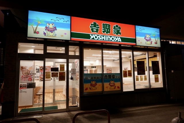 日本最南端の吉野家です。 他店と同じように株主優待や電子マネーが使えます。 他店と少しシステムが違います。カウンターで注文してから着席するの・・・
