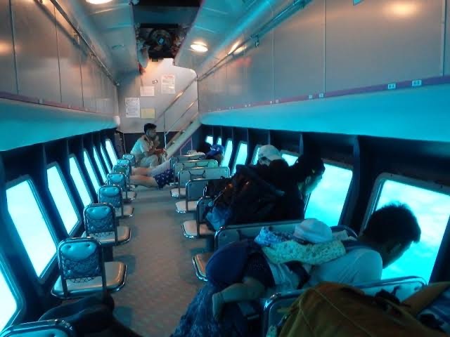 グラスボートでは体感出来ない離島唯一の半潜水式水中観光船で神秘の楽園へ出発