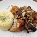 お酢とニンニクと特製ハーブで、2日間仕込み、専用オーブンでじっくり焼き上げた無茶苦茶ジューシーなローストチキンです! スタミナ抜群、さ・・・