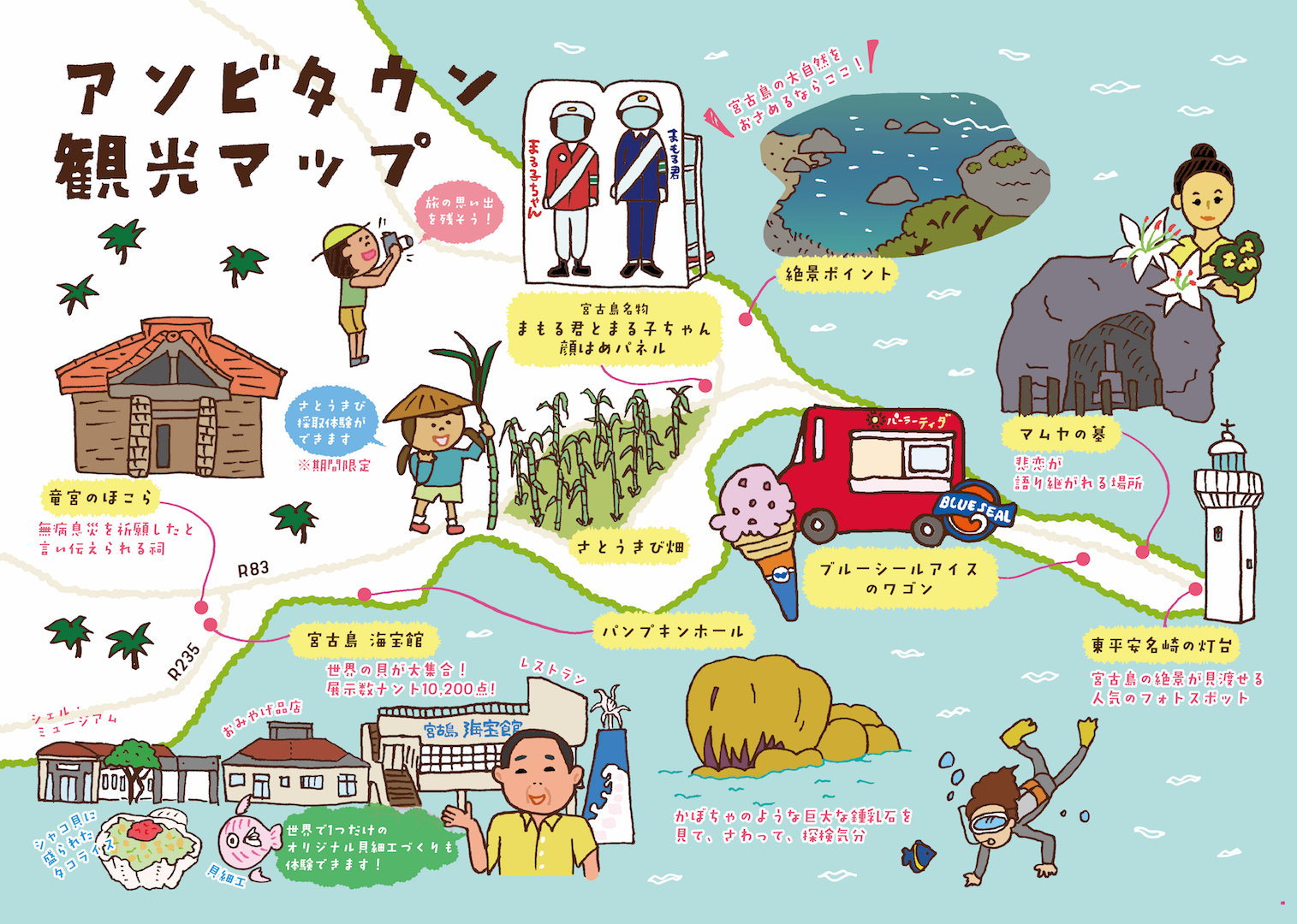 宮古島で雨が降った時の定番、宮古島海宝館。まるで海の中にいるような幻想的な空間の中で、一日思いっきり楽しめるんです。 宮古島海宝館では晴れていればシュノーケリングにダイビング・鍾乳洞体験など、天気が悪い時でも貝細工房や貝がらの博物館「シェル・ミュージアム」見学など色々なアクティビティができますよ。雨でも晴れでもドキドキワクワクな体験を宮古島海宝館でしてみてくださいね。 #宮古島 #観光 #遊び #絶景スポット #アソビタウン #展望レストラン #ランチ #宮古ブルー #デートスポット #雨の日 #お土産