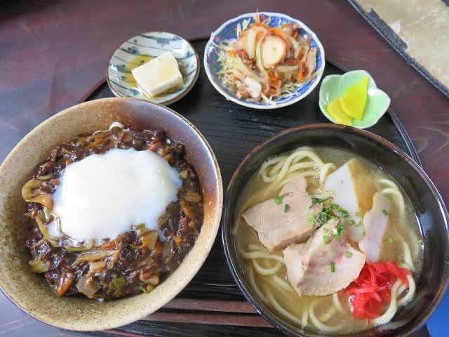 「すむばり」とはお店周辺の地名のこと。宮古島で有名店なタコ料理のお店で、ひっきりなしに訪れるお客さんは若い旅行グループからご近所の常連さんまで様々。名物は地場の蛸を使った料理の数々。宮古島は島ダコがとっても美味しい。イカスミならぬタコスミが食べられ、タコスミはダシがきいていておいしい。オススメはすむばり丼(もずくとたこの炒め丼)900円。 #宮古島 #グルメ #食堂 #タコ料理 #たこ料理 #すむばり #定食 #沖縄料理 #ランチ #ディナー