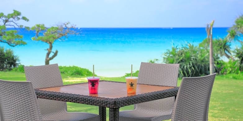 宮古島の海を楽しむ為のカフェレストラン BlueTurtle(ブルータートル)。あきれるほど美しい青、シルクの様な砂の白。