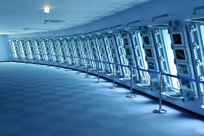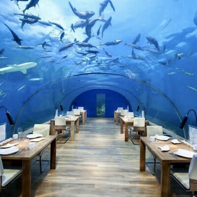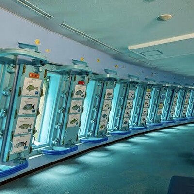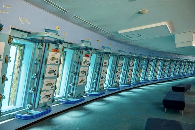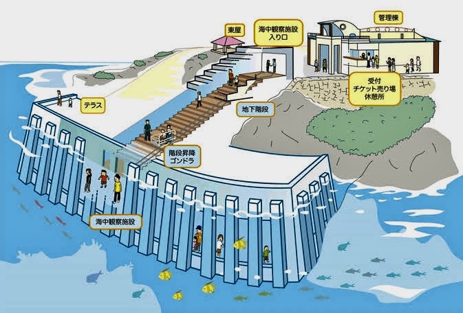メインの海中観察施設は、24個のアクリルパネルの窓から大海とつながる自然の一部を見ることができる施設です。