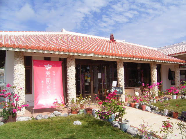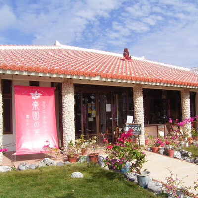 「楽園の果実」は宮古島から車で行ける離島、来間島にあるカフェ。有機栽培のマンゴーやメロン、パイナップルなど、自家農園で採れた旬のフルーツを使ったスイーツが人気で、シーズン中は行列必須の人気店です。スイーツのほか自家製の野菜を使ったパスタや丼などのお食事メニューも提供しているので、ランチに訪れるのもおすすめ。 建物奥がカフェスペース、手前がお菓子や雑貨などを販売するショップとなっており、パウンドケーキやゼリー、ジャムなどお土産にぴったりのオリジナル商品も扱っています。