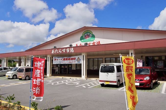 あたらす市場は、宮古島のファーマーズマーケットです。宮古空港からは車で約5分のため、気軽に立ち寄れます。宮古島で収穫された野菜や果物のほか、お土産品の種類も豊富です。総菜や手作りおやつも販売されているため、お弁当などを購入してビーチでのんびり食べるのもよいでしょう。