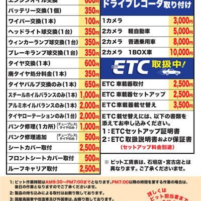 | ヘッドライト・ウインカー・ブレーキランプ球交換(各1台) | 350円 |