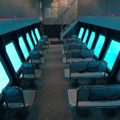 海底を覗き込む一般的なグラスボートでは体験できない半潜水式の水中観光船。