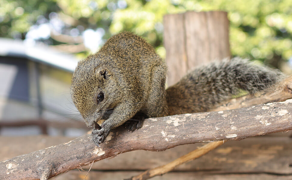 えさやり体験では、間近で餌を食べる元気いっぱいのリスを見ることができます。