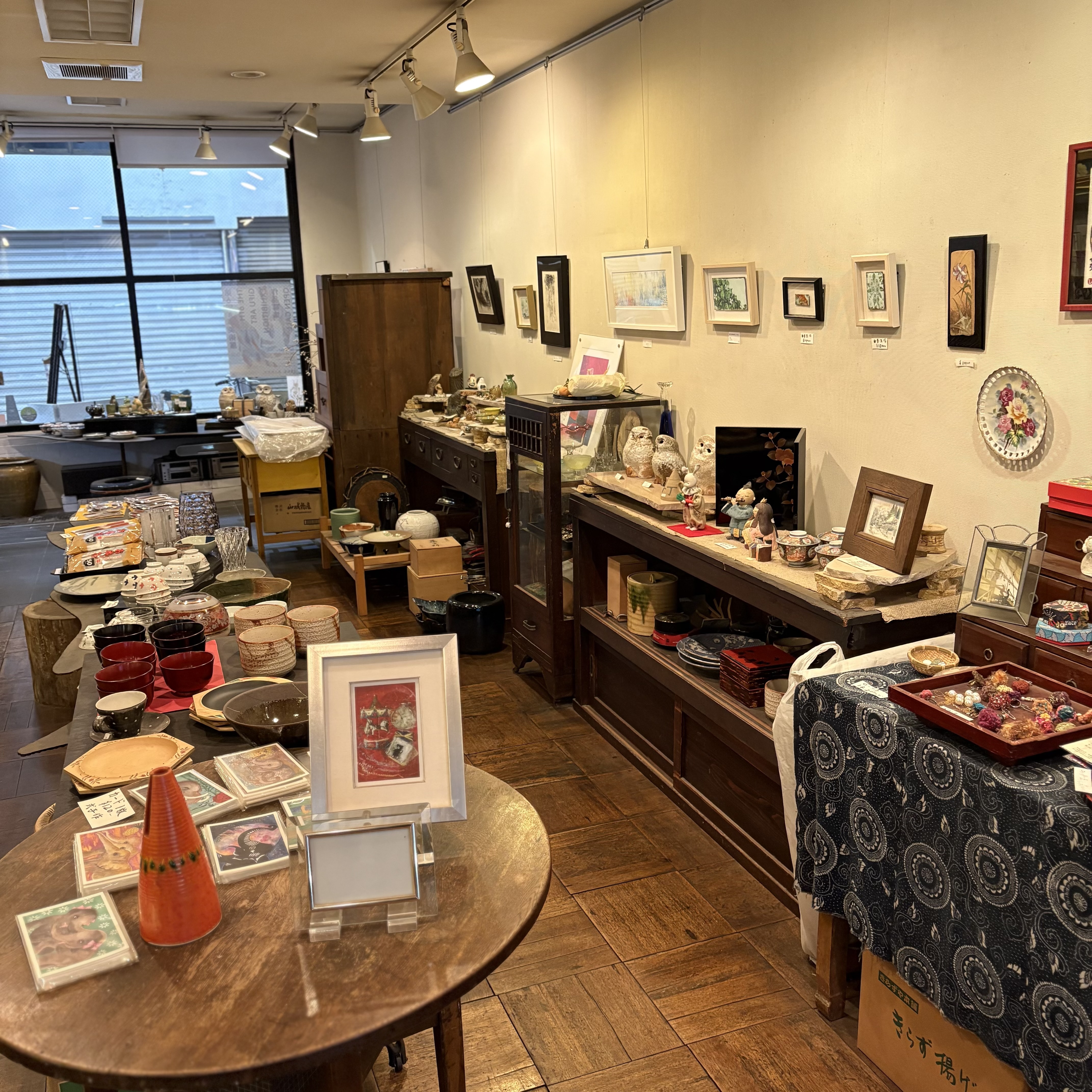 結構広いギャラリーで多数の作品が展示できそうです! ギャラリーは正面右側と1階奥にある階段を登って 2階にあり、天井が高くとても雰囲気の良い空間が広がっており、クリエイターの方からも人気のギャラリーのようです! 1階雑貨店では色々なクリエイターの作品が買える他、なんと占いもやっております!