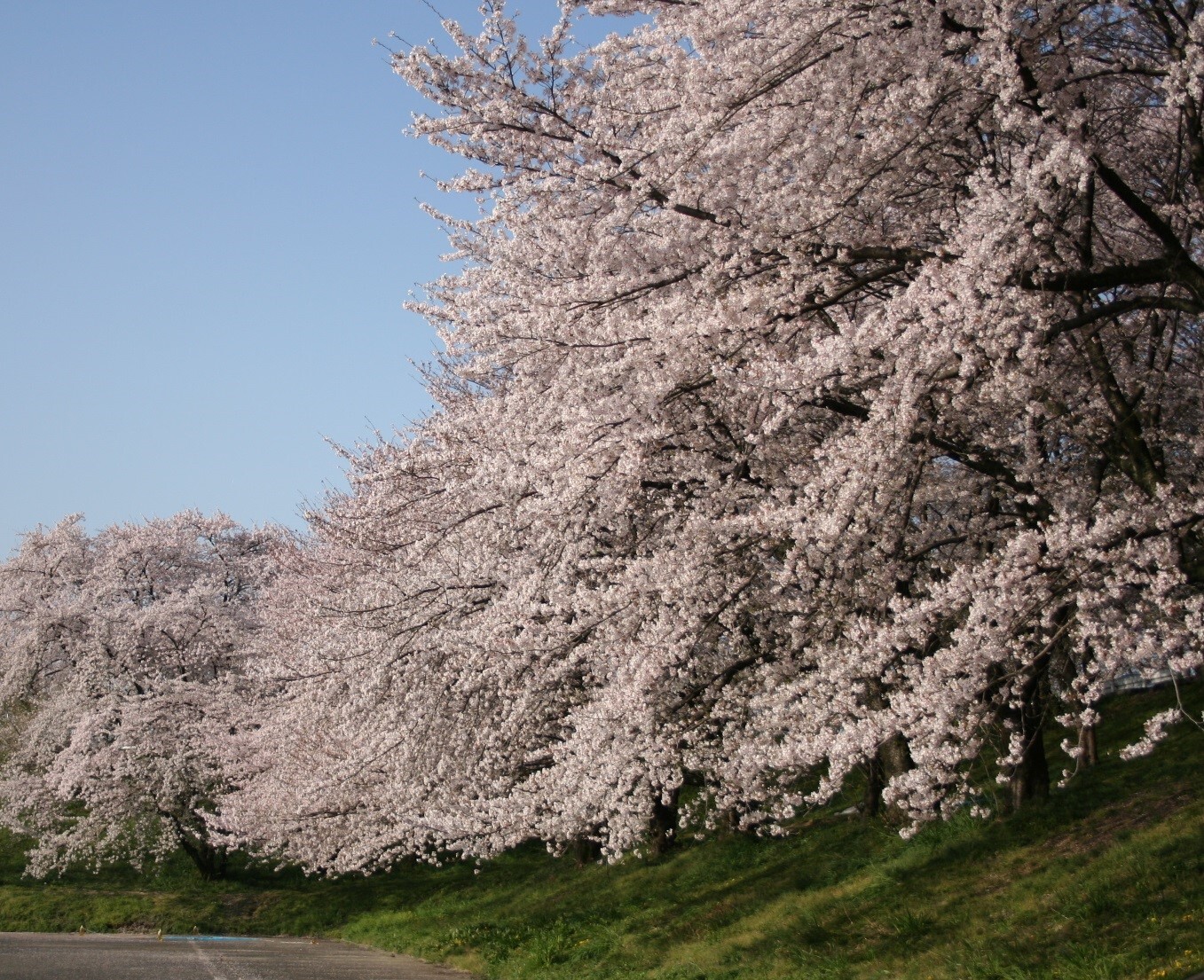 ソメイヨシノを中心に約1kmにわたって桜並木が続きます。