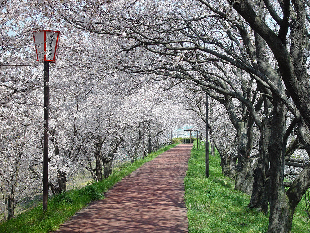 満開時の夜には、ライトアップされた美しい桜のトンネルとなり多くの人でにぎわいます。
