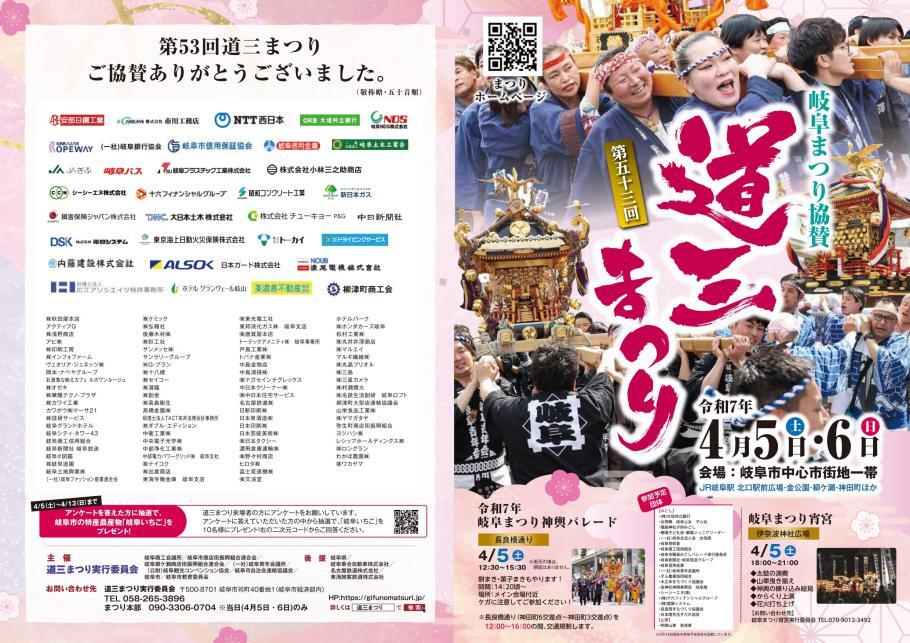 | 開催日 | ・道三まつり 4月第一土曜日と翌日(令和7年は4月5日、6日) ・岐阜まつり 神幸祭と宵宮4月第一土曜日 (令和7年は4月5日) |