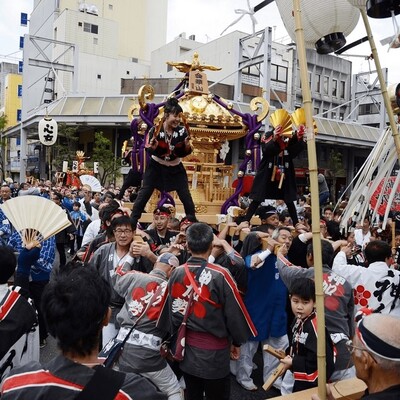 また、伊奈波神社の例祭「岐阜まつり」も行われ、特に土曜日の宵宮は、山車に多くの提灯がつけられ、その提灯を前後左右に揺らしながら進む幽玄の姿と、迫力ある担ぎ手の掛け声と共に進む神輿の躍動感あふれる姿とが楽しめます。