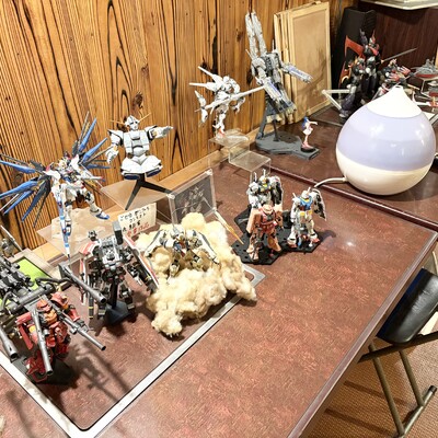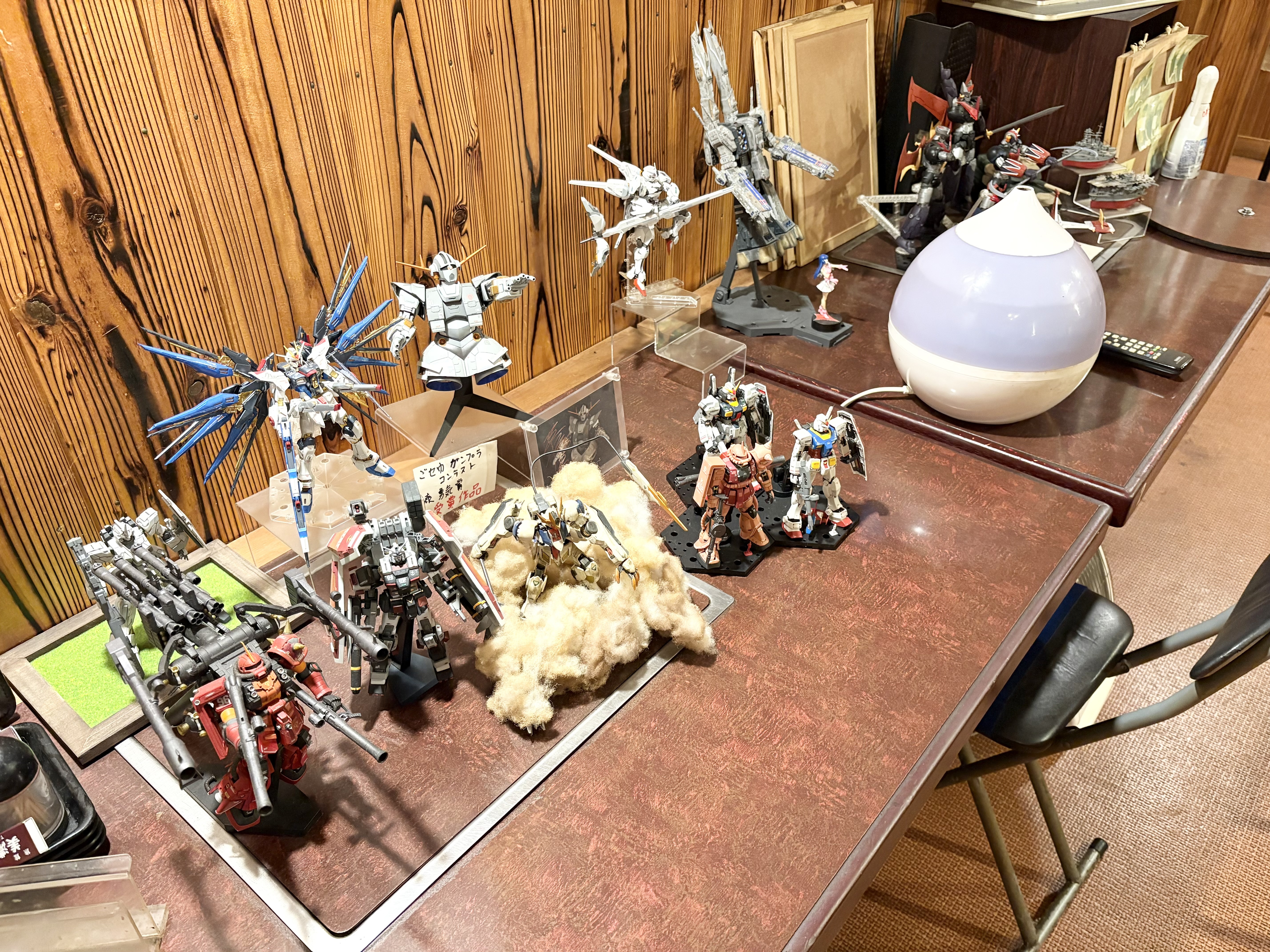たくさんお店に飾ってあるガンプラはなんと店主様の作品!