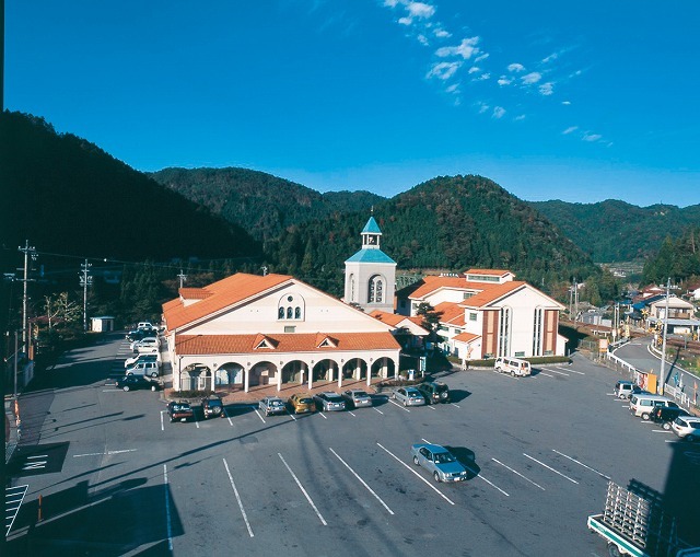 国道41号沿いにあるオレンジ色の屋根がひときわ目立つ洋風の建物の美濃白川ふるさと館ピアチェーレは、白川茶や白川ハム、まゆ工芸品を始め、白川町ならではのお土産がずらり。