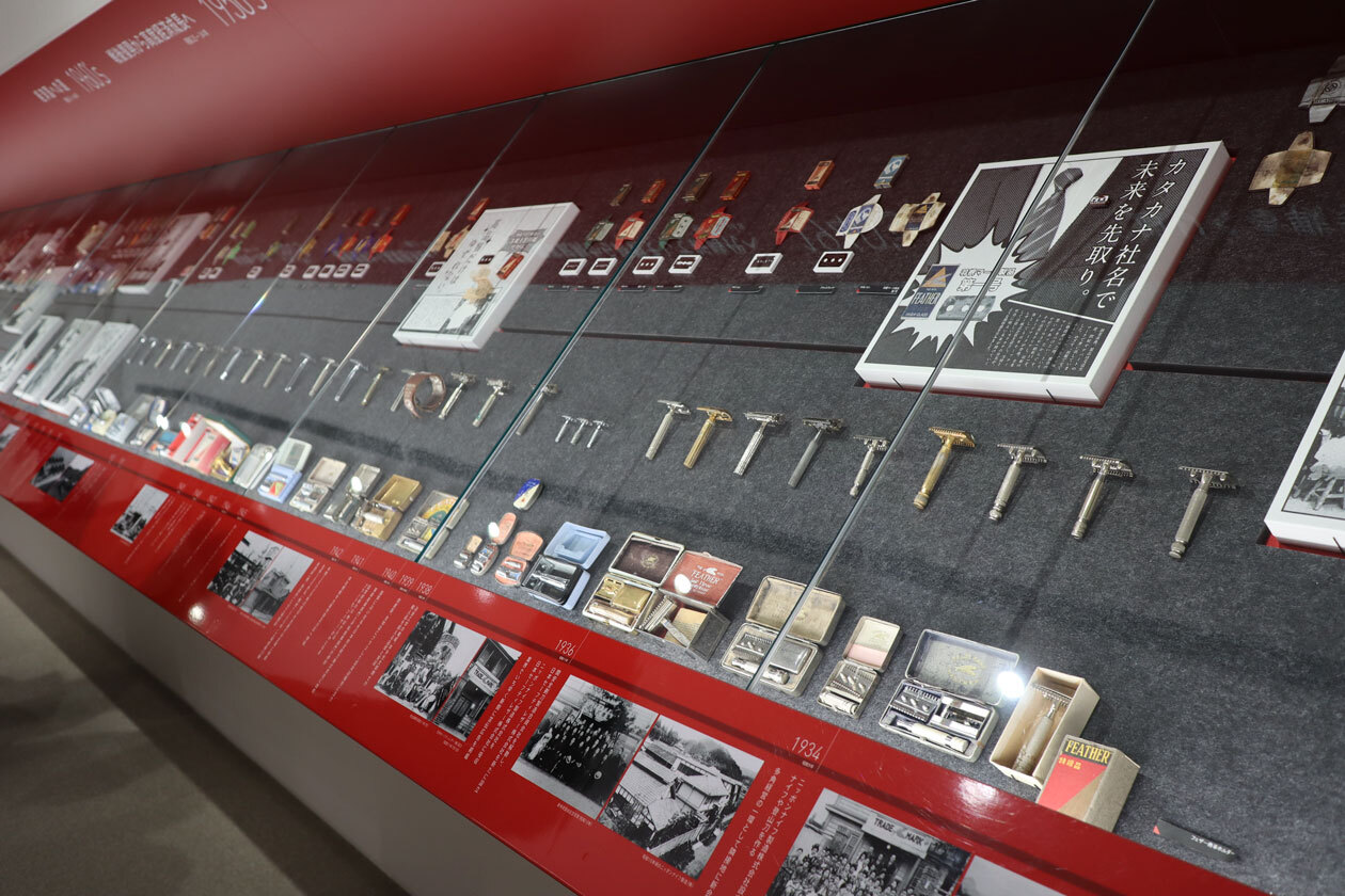 普段、私たちが特に気にする事無く使っている刃物。フェザーミュージアムは、そんな刃物の“目からウロコ”の体験と知識をご提供いたします。現在のカミソリの原点となった、歴史的遺産の数々を国内外から積極的に1万点以上収集。それらを巨大なガラス張りの収蔵庫でご覧いただき、新たなカミソリの歴史や文化を学ぶ事ができます。