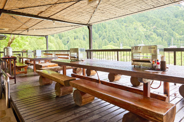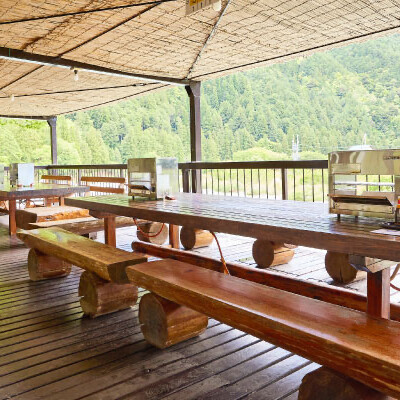 風が気持ち良い川床式のオープンデッキで、