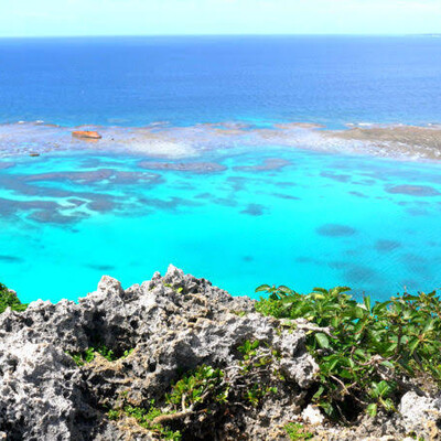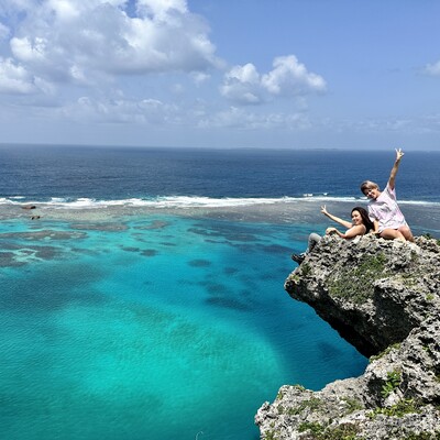イグアナ岩は、宮古島の隣「伊良部島」の北岸に位置する絶景スポットです。断崖絶壁から伊良部ブルーの海と青空が一望できるとSNSで話題になり、知られるようになりました。崖の先端部分の岩が「イグアナ」のように見えることから、「イグアナ岩」と呼ばれています。