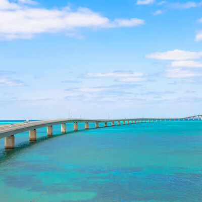宮古本島と池間島を結ぶ全長1,425mの橋です。橋の上からは、西平安名崎や大神島、美しい海のグラデーションを望むことができます。トライアスロン宮古島大会のバイクコースにもなっているので、選手気分で絶景サイクリングもおすすめです。