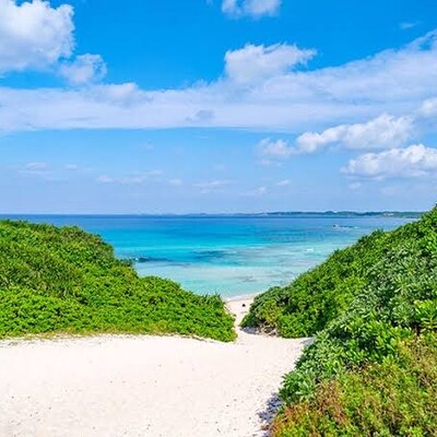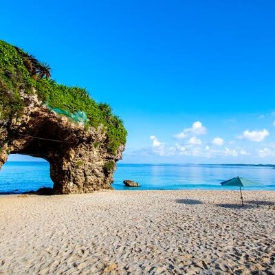 こじんまりとしたビーチですが、青い海、真っ白な砂浜のコントラストなど自然がつくりだした芸術を見ることができます。宮古島市平良の市街地から約4kmと近いこともあり、地元住民だけでなく観光客にも親しまれています。