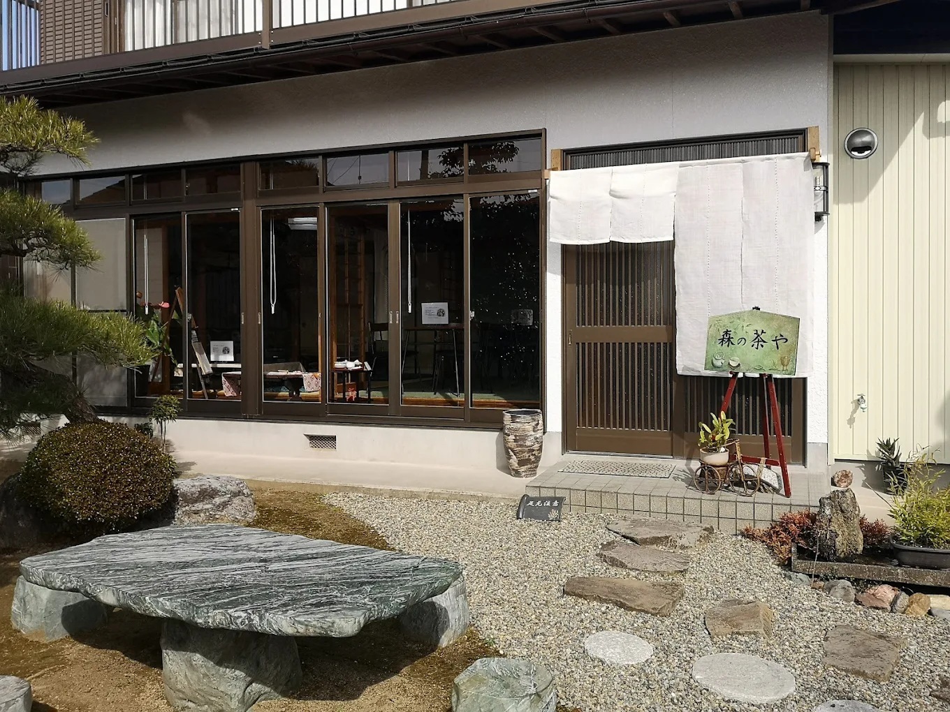 「森の茶や」では心の癒しを味わっていただく、煎茶や抹茶、四季のお茶をご用意しております。ランチは野菜たっぷりのこだわりのキーマカレーが人気です。庭を眺めながらお茶をお召し上がり、和を感じる空間でくつろぎのひとときをお過ごしください。