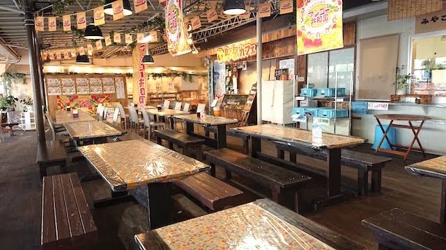 ちょうじ屋(宮古そば)久松天ぷら屋(沖縄天ぷら)食パンのニシザト(生食パン、塩パンが人気)島のダイニング(お弁当、お惣菜)宮古島ジェラート(雪塩ソフトクリーム、自家製ジェラート)