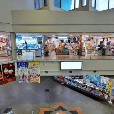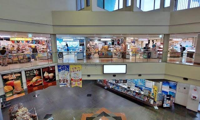 空港内施設:レストランのむら・万喜・宮古島ジェラート・てもみん・A&W・もりやす・宮古島の雪塩・島の駅みやこ・美ら旅・おみやげ山野美・おみやげの専門店SUNA-YAMA・マイパマ