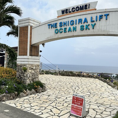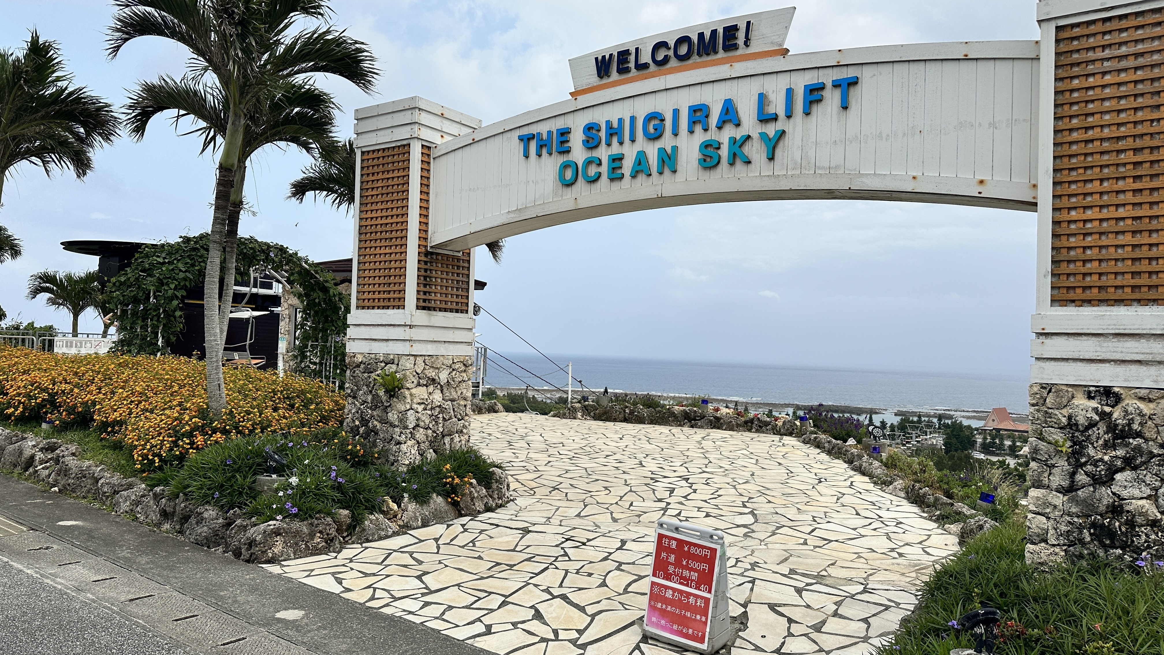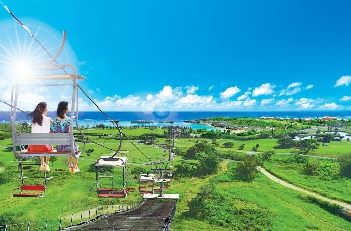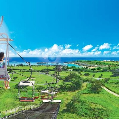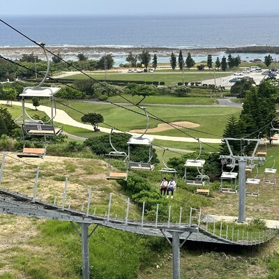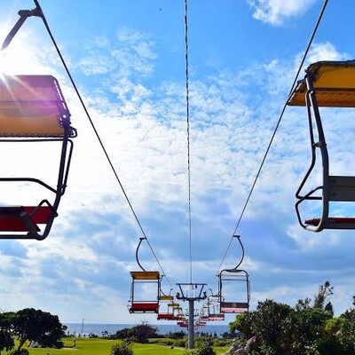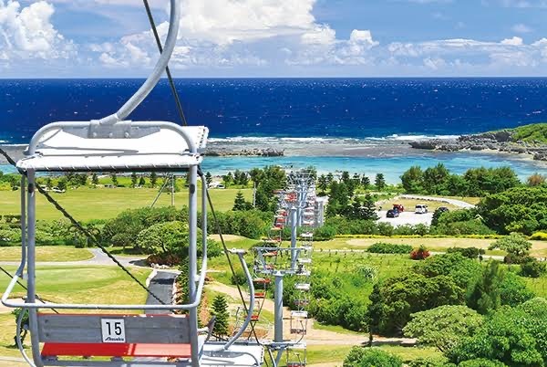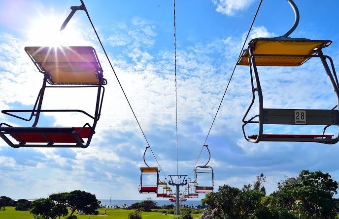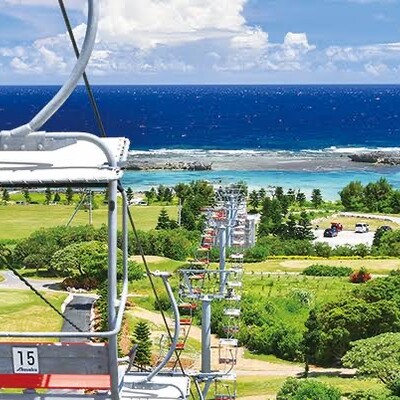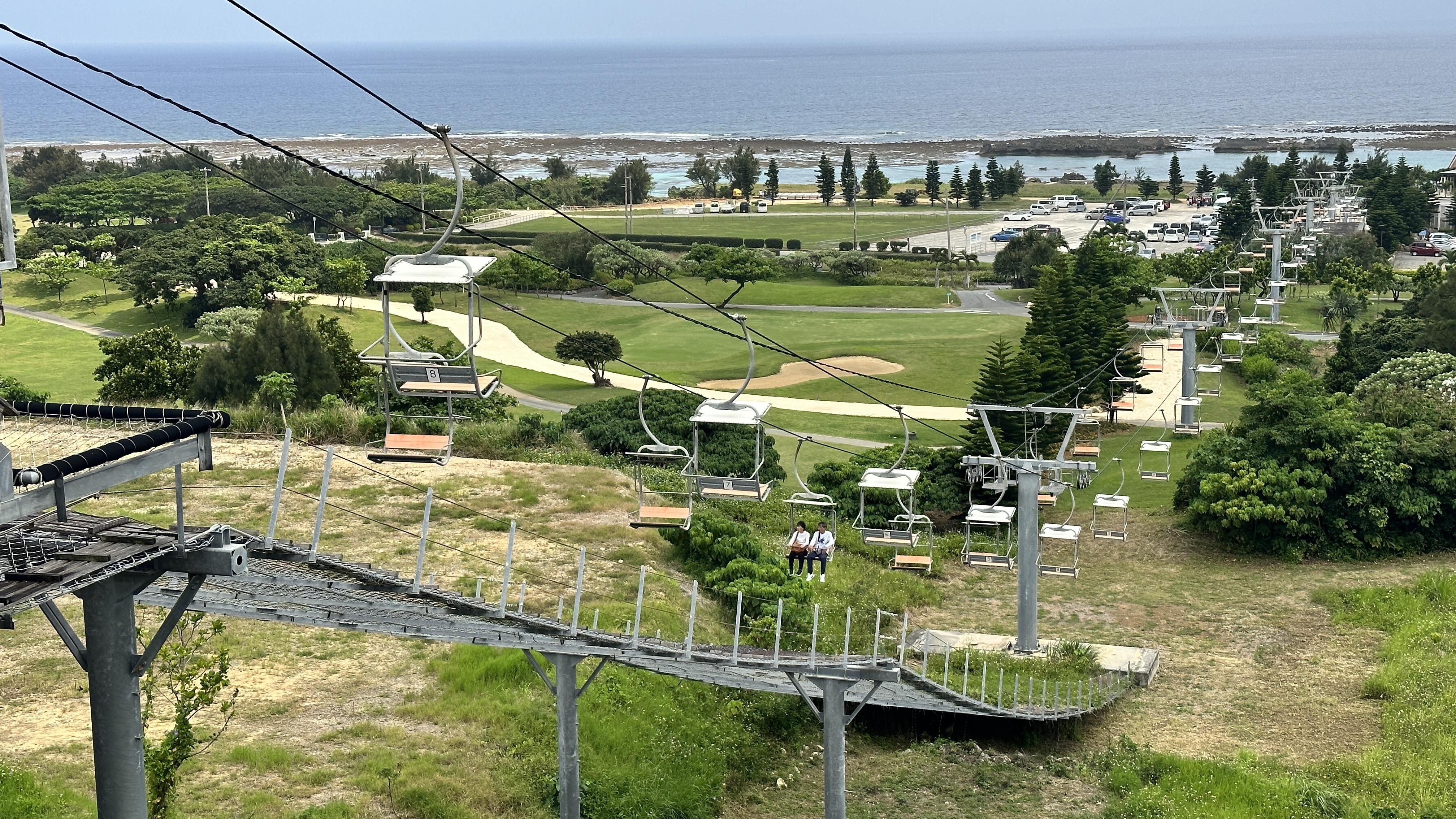 小高い丘の上から海に向かってのびる沖縄唯一のペアリフト!